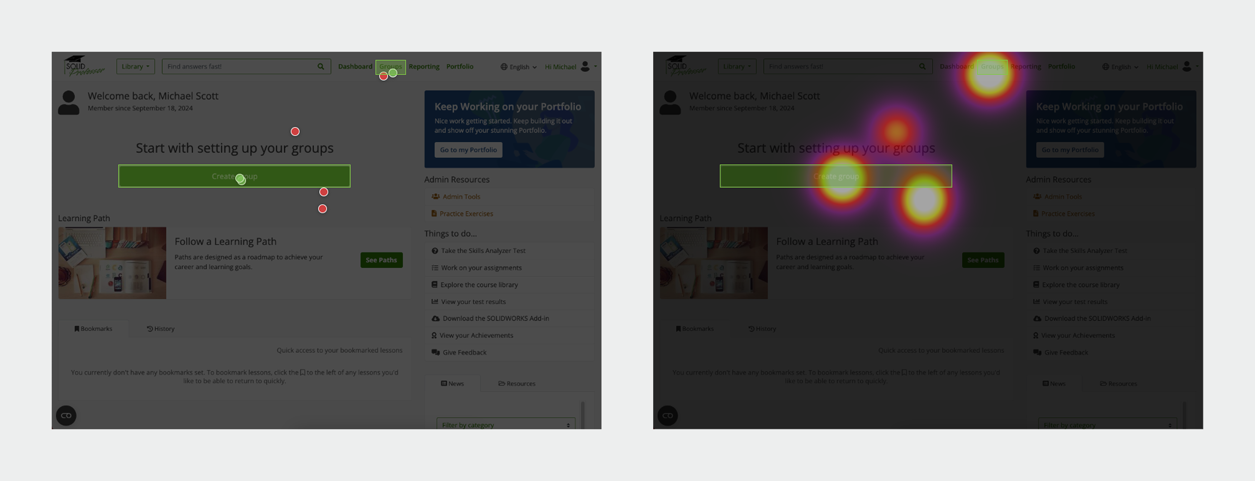 Result: Only 43% successfully found the correct action. Most clicked “Create Class” or nearby areas, assuming the entire component was clickable.