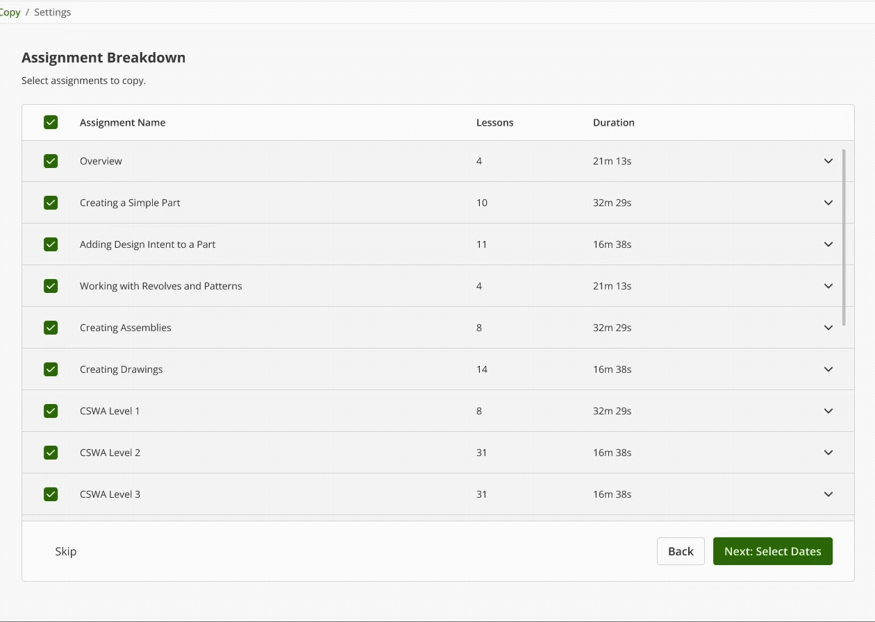 Based on instructor feedback, we introduced the ability to skip adding assignments when copying a class. This allows instructors to replicate class settings and structure first, then add assignments later — a common workflow for instructors preparing future courses.